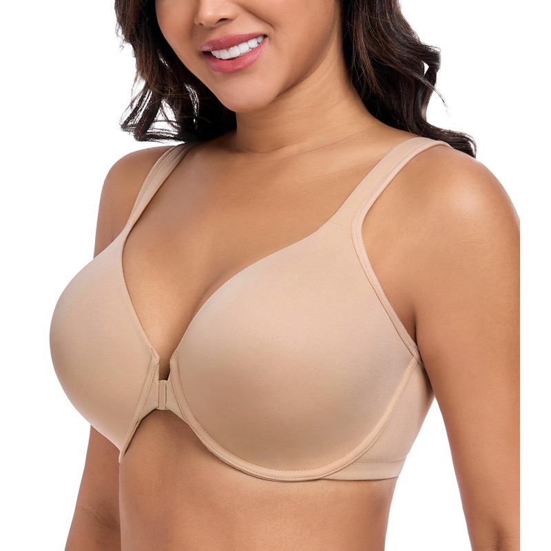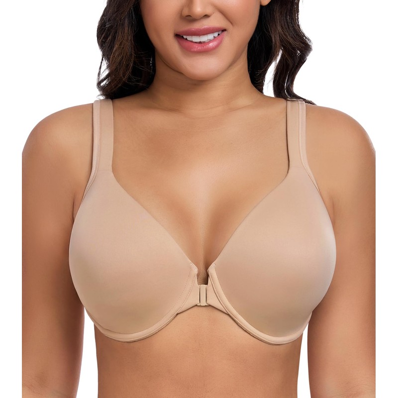 DotVol Women's Front Closure Posture Everyday Bra Plus Size Full Figure Underwire Back Support Bralette(Beige,40C)