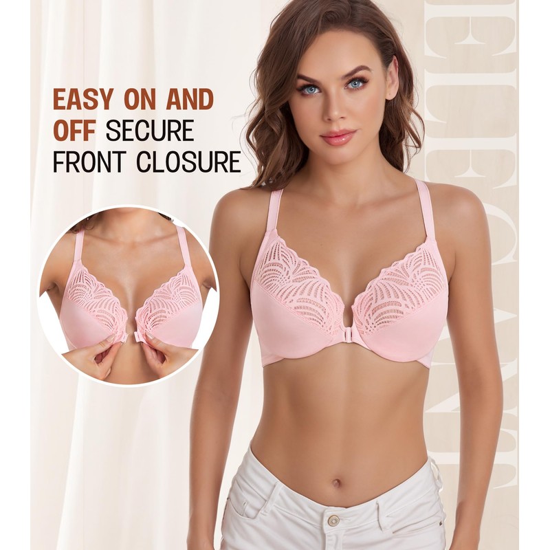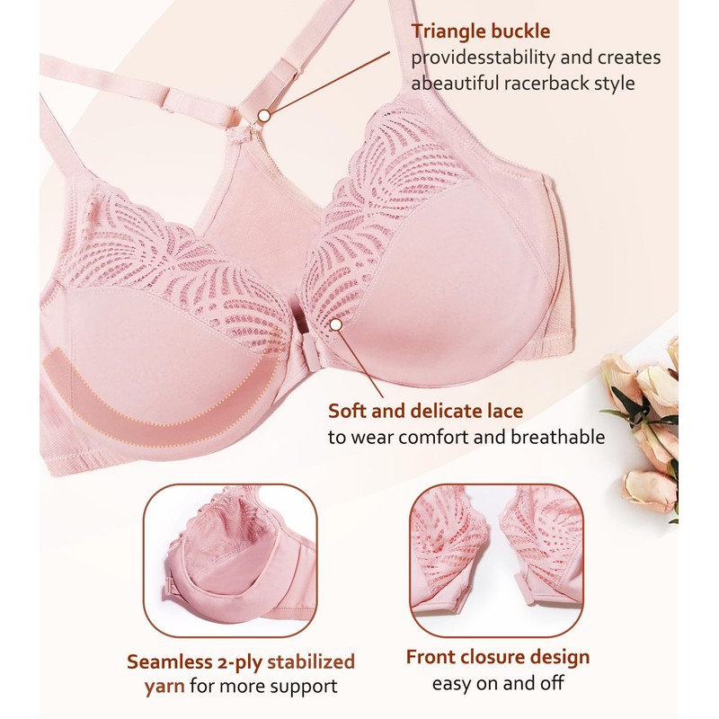 - Front Closure Bra: With front closure, is easy to put on and off. You don’t need to reaching behind your back to clasp. Suitable for the elderly, the lady who have undergone surgery, or someone with arm pain.