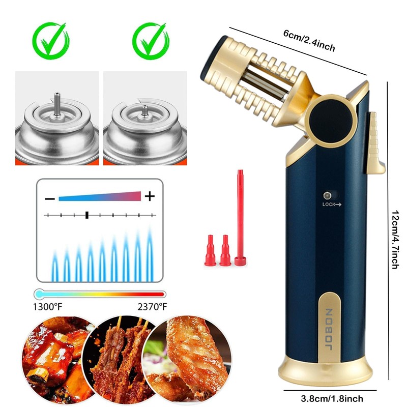 - REFILLABLE: The butane torch lighter, say goodbye to disposable lighter. Our butane refillable torch lighters provide a sustainable and cost-effective solution for frequent users, promote efficient and environmentally friendly use. This windproof torch lighter is your best choice for baking cake, lighting your fireplace, candles outdoor picnics, hiking, camping and BBQs