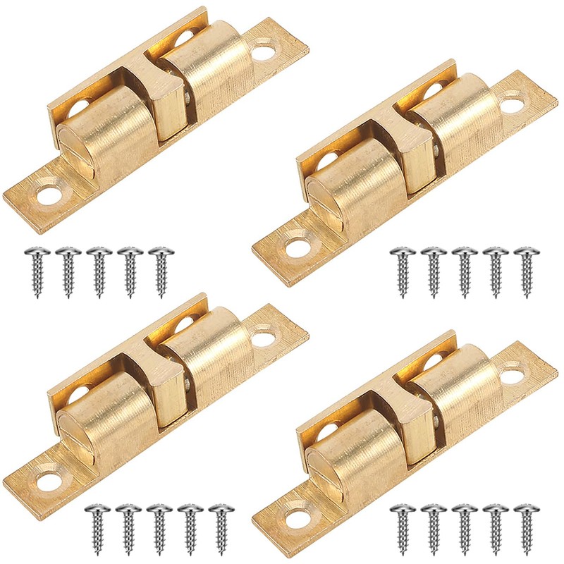 Double Ball Catch, Closet Ball Latch, Set of 4 (Includes Screws), Double Ball Roller Catch, Ball Catch Latch, Brass 1.6 inches (40 mm), Length 1.6 inches (40 mm), Cabinet Tension Latch, Suitable for