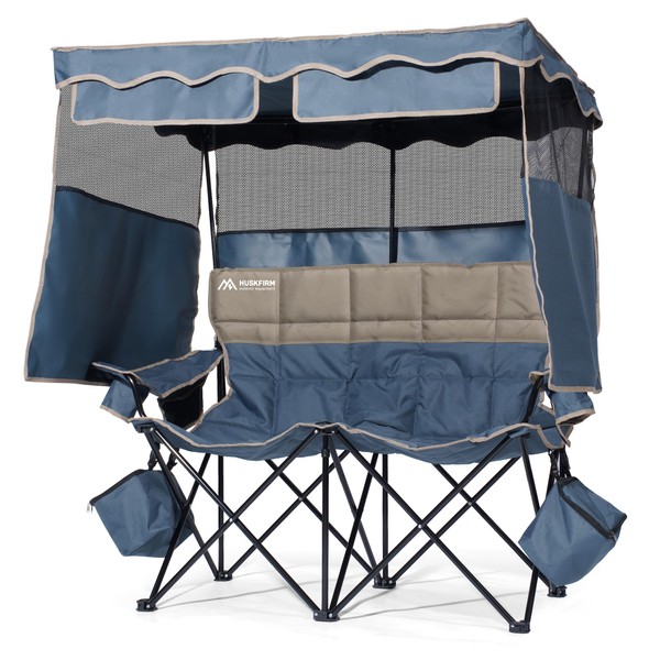 - Easy To Fold And Carry: This folding loveseat camping chair with canopy can be quickly folded into the storage bag, it is only 18 pounds and easy to carry. Suitable for a variety of occasions, such as camping, fishing, beach, picnic, etc. It can provide you with a comfortable resting place wherever you are.
