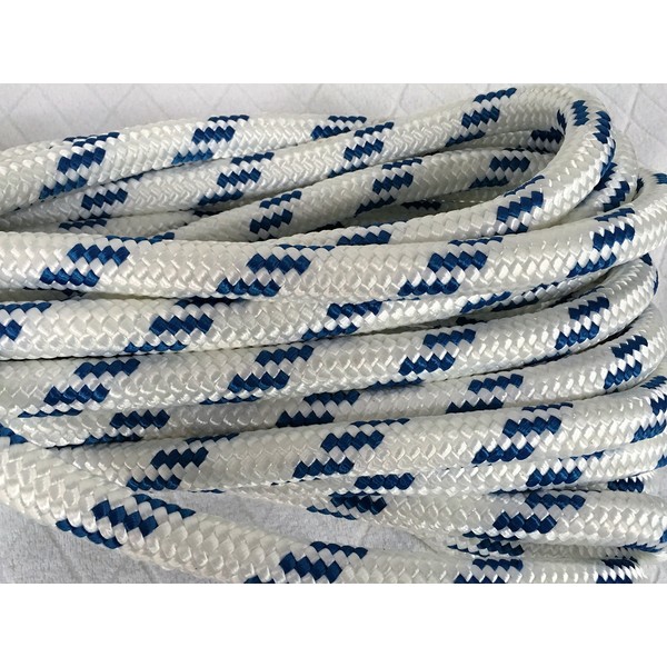 Double Braid Polyester Arborist Bull Rope 3/4 inch by 100 feet, White Blue