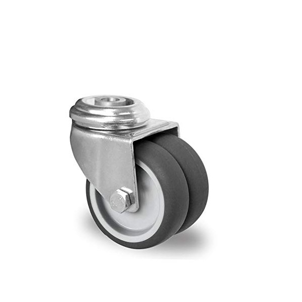 Double Castor 75 mm Bolt Hole Castor with Rubber 100 kg Roll