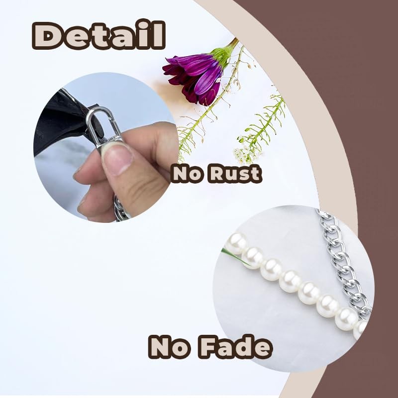 - Bag Handle Accessory Easy to Use: The double chain purse strap is not only a fashionable accessory but also a practical one, the chain extender for purse pearl suitable for a variety of occasions and items, the pearl chain decoration can easily be paired with your daily essentials such as wallets handbags chains, mental chains for handbags adding a touch of elegance to your style