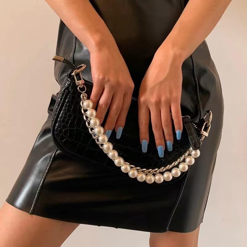 2. Meaningful of the purse bag chain strap: The pearl chain charms for handbag can bring new visual enjoyment, the handle bag purse charms exquisite design, the mental chain strap can be used as a decorative element for bags, enhancing the overall beauty and fashion sense of the bag