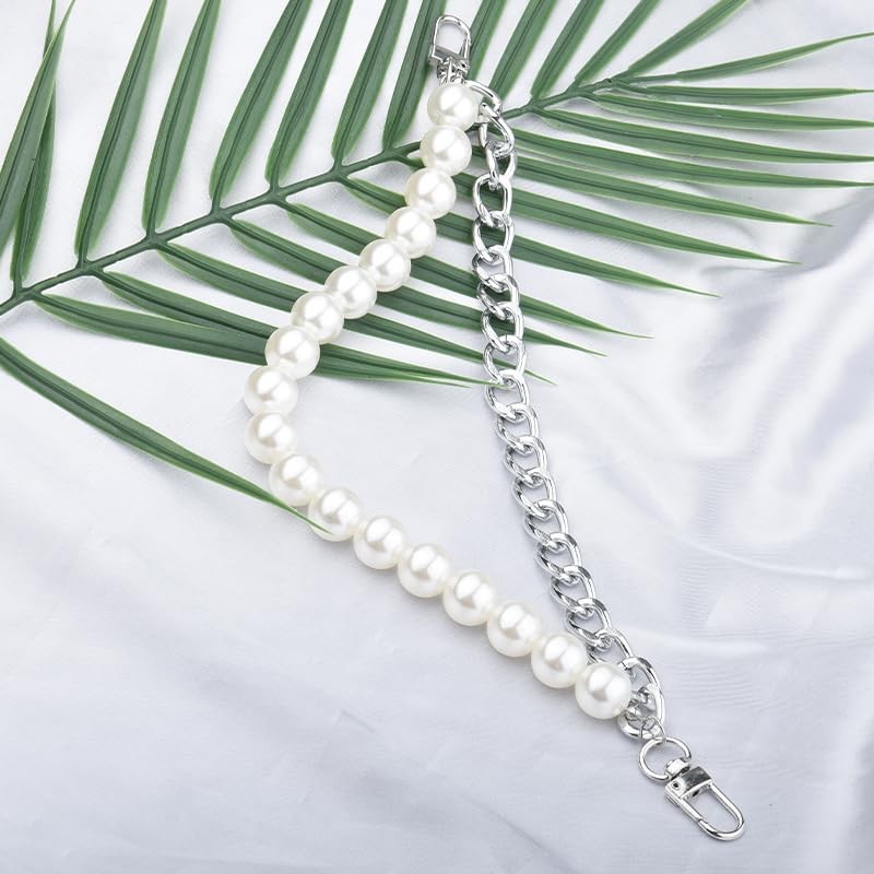 - Silver Purse Chain Strap: The fashional bag chain charms for handbags combines pearls and chains, with a total of 6 pearls, a length of 9.5'', a width of 3.1'', and a weight of 0.1 pounds, the purse chain accessories silver perfectly fitting bag chains and purse chains, allowing for handheld use without putting pressure on the hand, and even with long-term wear, the pearl chain for purse won't cause pain