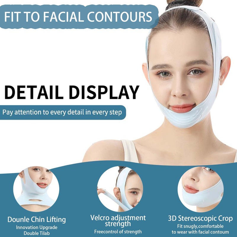- Chin and Facial Sculpting: Our advanced dual chin tightening belt creates an upward lift on the chin and diagonal upward force on the cheeks, effectively combating nasolabial folds. It improves double chins, prevents sagging, and enhances facial contours, giving you a more defined, youthful V-shaped face.
