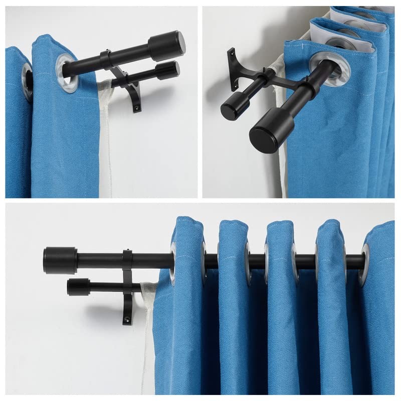 Double Curtain Rods 72-144", Matte Black Double Curtain Rods with Cap Finials, 1 Inch Front and 5/8 Inch Back Double Drapery Rod, Adjustable Dual Curtain Rod Black Double Window Treatment Rods