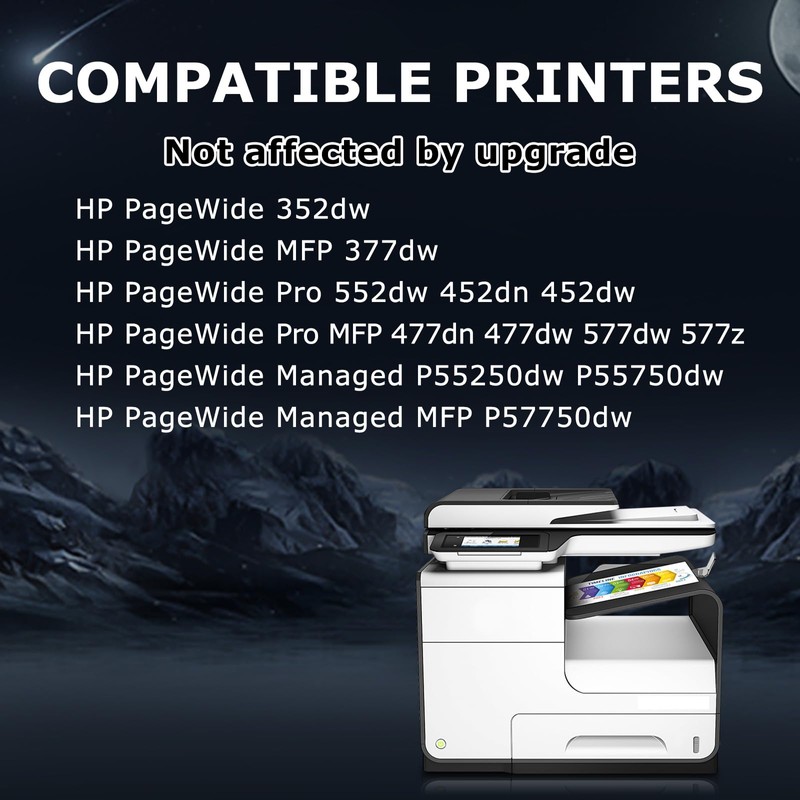 - 100% Compatible for HP Printers:for HP PageWide Pro 477dw, 477dn, 452dw, 352dn, 352dw, 552dw, 452dn, 557dw, 577z,HP MFP 377dw, 377dn, Managed P55250dw, P57750dw Printer. Please confirm the printer firstly.