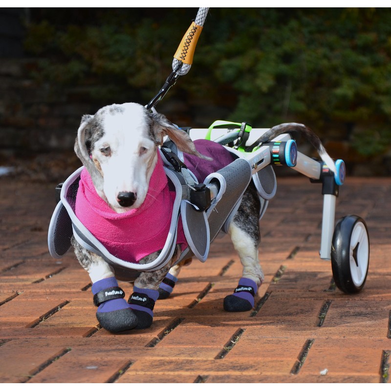 PawFlex Comfy Pawz are a patented Dog sock/Bootie that have unique features that other dog’s socks and booties on the market today are lacking. The Silicone nonslip grip on inner cuff and inner midsection of socks and booties create a gripping effect on your dog’s leg, along with stretchy strap so that socks/booties stay on without spinning, twisting, or sliding off.
