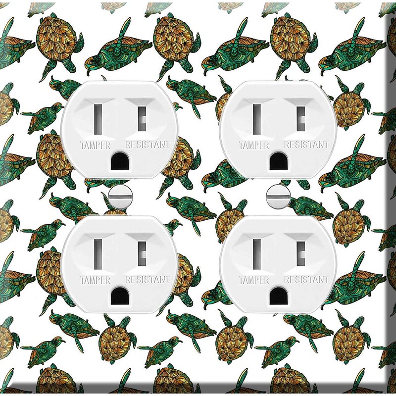 Double Duplex Outlet Cover Wall Plate - Decoratortive Sea Turtle Pattern