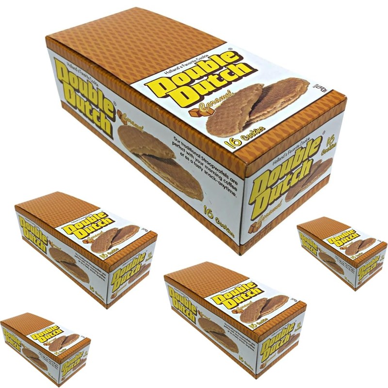 Double Dutch Orginal Caramel StroopWafels Singles 16 CT Box waffle cookies x 5 Packs