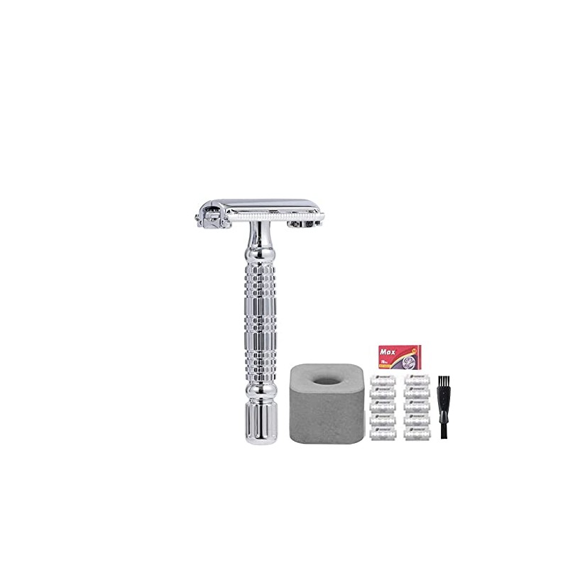 • ✅Restore Classic—— Classic never fade away. Traditional wet shaving provides a sense of ritual in your daily routine. It is also a clean, comfortable and inexpensive shaving method. Best value combo, complete wet shaving set including every tool you need. Package includes: 1x DE Safety Razor, 1x stand, 10xBlades, 1x Mini Brush