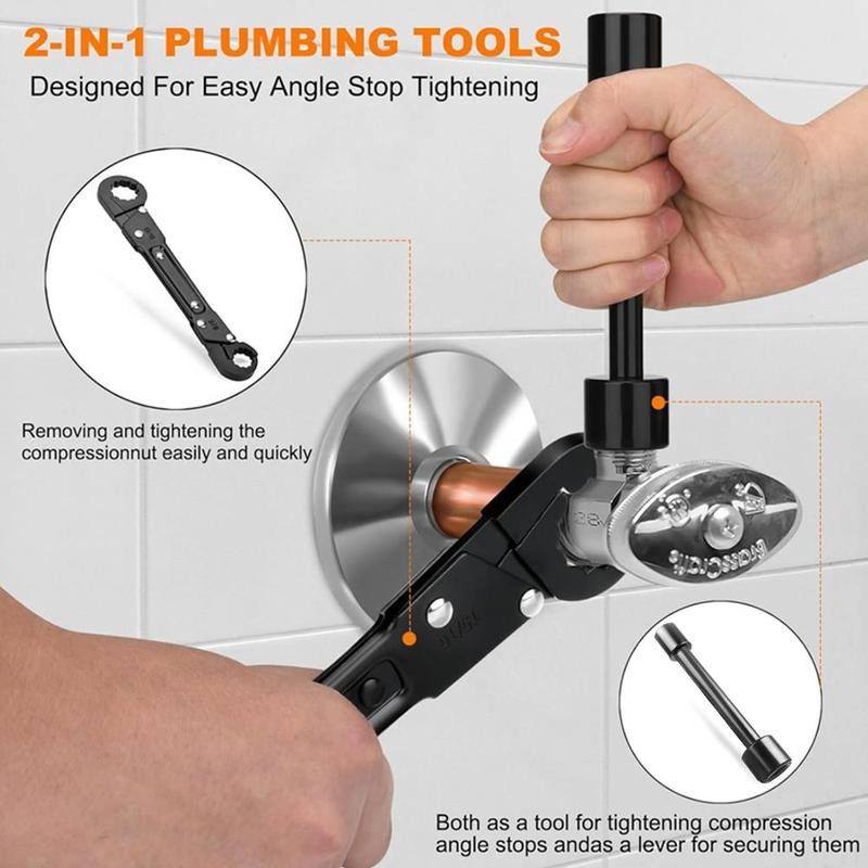 Double Ended Pipe Wrench Set, Plumbing Wrench, Professional Plumbing Tool Set for Easy Angle Stop and Supply Nut Installation, Gifts for Men, Grip, Men Gifts, Heavy Duty, Industrial:_Red_1 Set
