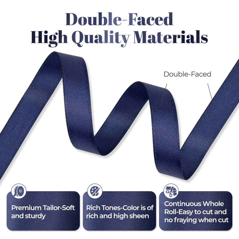 Double Faced Navy Blue Satin Ribbon, 1/2 Inch X 25 Yards Polyester Ribbon for Gift Package Wrapping, Crafts, Bow Making, Sewing, Flower Bouquet, Wedding Party Decor