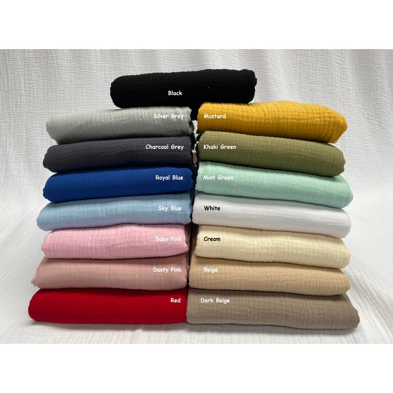- Available in 15 colours. Composition: 100% cotton double layer gauze.