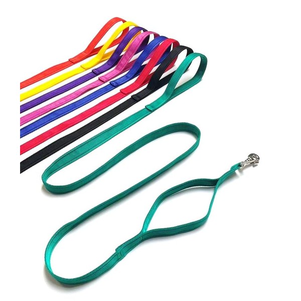 Double Handle Dog Leads 2m Long Quick Grab Handle For Safety Control In 25mm Cushion Webbing (Emerald Green)
