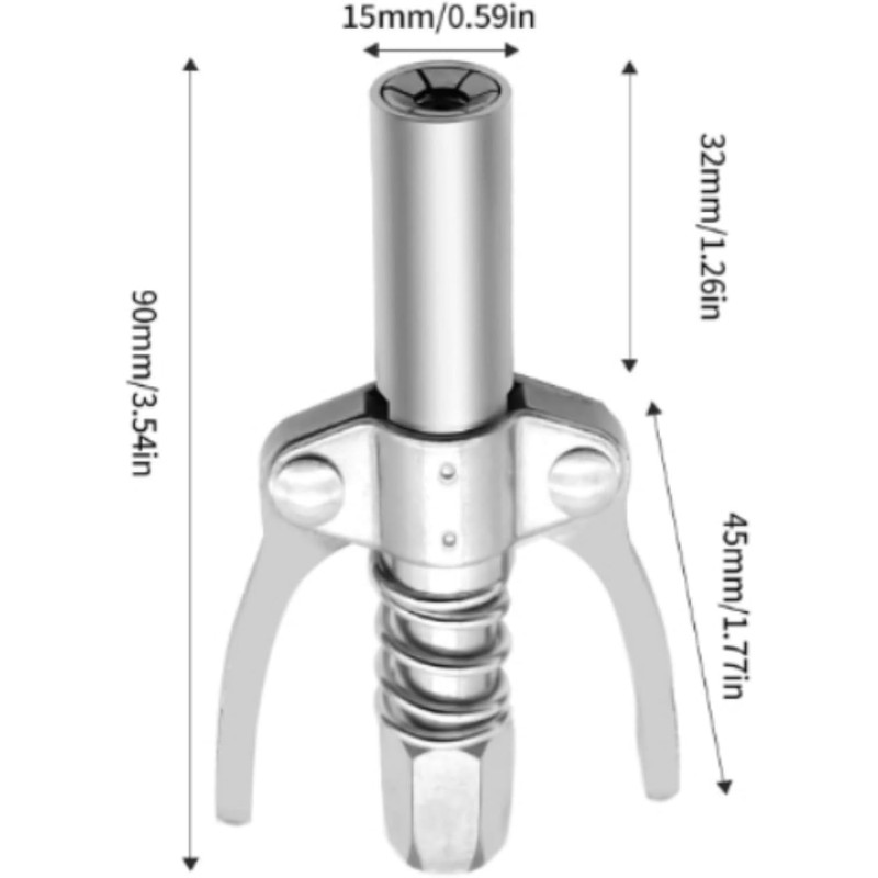 - 1.Locking and Sealing: Our grease gun coupler features is a 6-jaw design for easy snap-on and off of grease fittings. The reinforced jaws and high-quality sealing gasket ensure a leak-free experience, even under extreme pressure up to 10,000 PSI.