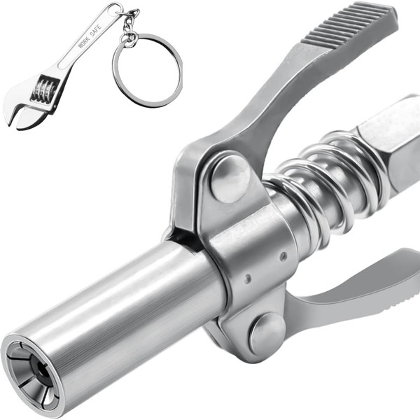 Double Handle Quick Lock Release Grease Gun Coupler, Grease Tips Ends Couplers, Compatible with All Grease Guns 1/8" NPT Fittings, Rated 10,000 PSI .Mini Wrench keychain
