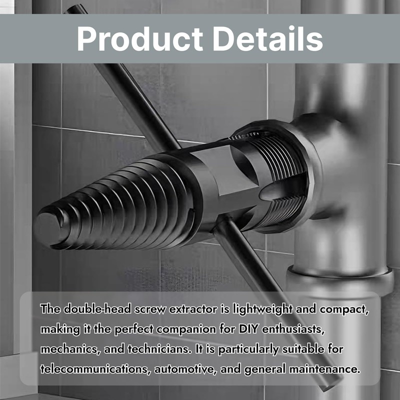 - Compact design and light weight for easy carrying and space-saving storage: double head screw extractor with its compact size, the screw extractor fits easily in any tool box. Double head screw extractor perfect for fitters, installers and DIY enthusiasts who need a reliable tool for precise disassembly.