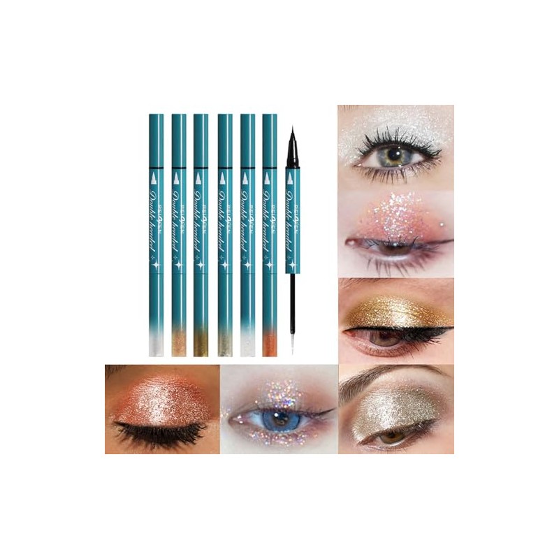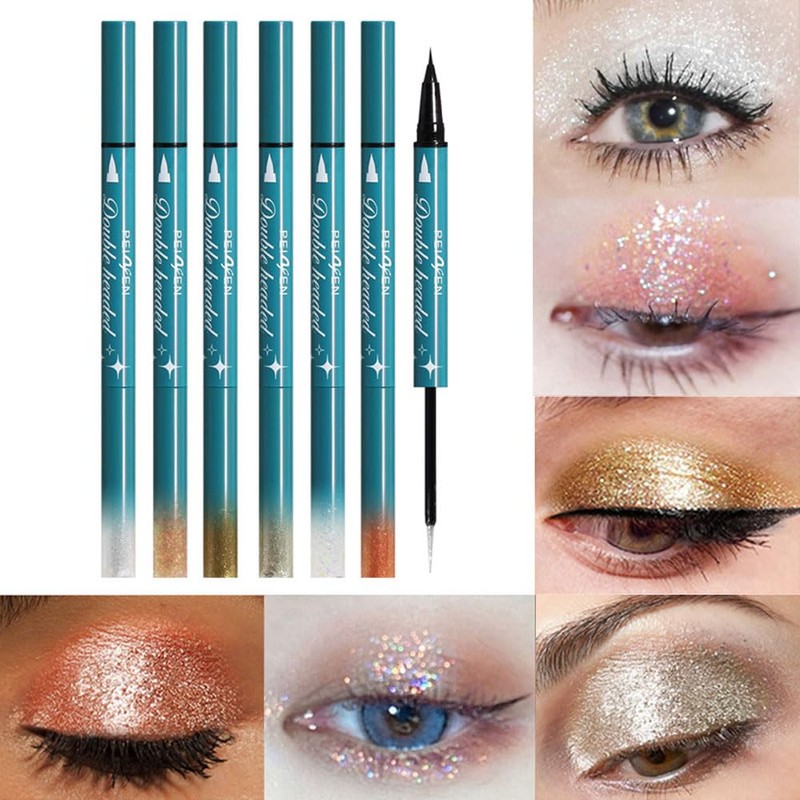 Double-Headed Liquid Sparkling Eyeshadow Eyeliner Pen for Women, Ultra - Fine Tip Glitter Shimmer Liner Shadow for Eye Makeup, High-Pigment Highlighter Brightener Stick,Waterproof Quick - Drying (1#)