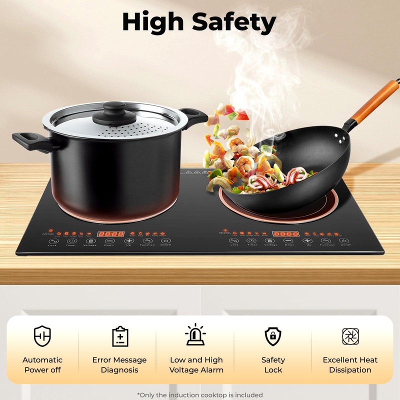 This induction cooktop combines aesthetics and practicality, making it a helpful assistant in your kitchen. It has two independent temperature-controlled heating zones to meet your different needs such as boiling, stewing, and stir-frying, which greatly improves cooking efficiency and saves you time. It heats food quickly, locking in the nutrients and keeping the original flavor. Humanized design, simple operation, and long service life make cooking a pleasure. Choose our product, so you can easily enjoy the fun of gourmet cooking in your busy life.