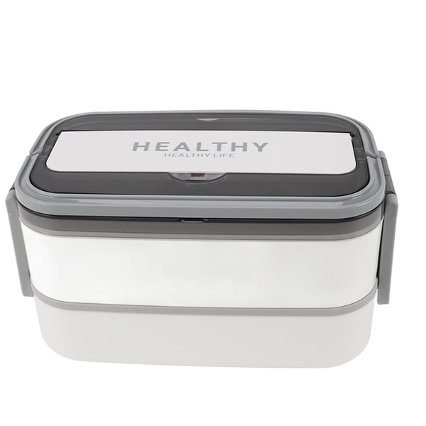 Double Layer Bento Box 316 Stainless Steel Compartment Portable Lunch Box with Cutlery for Work School Office 1400ml White