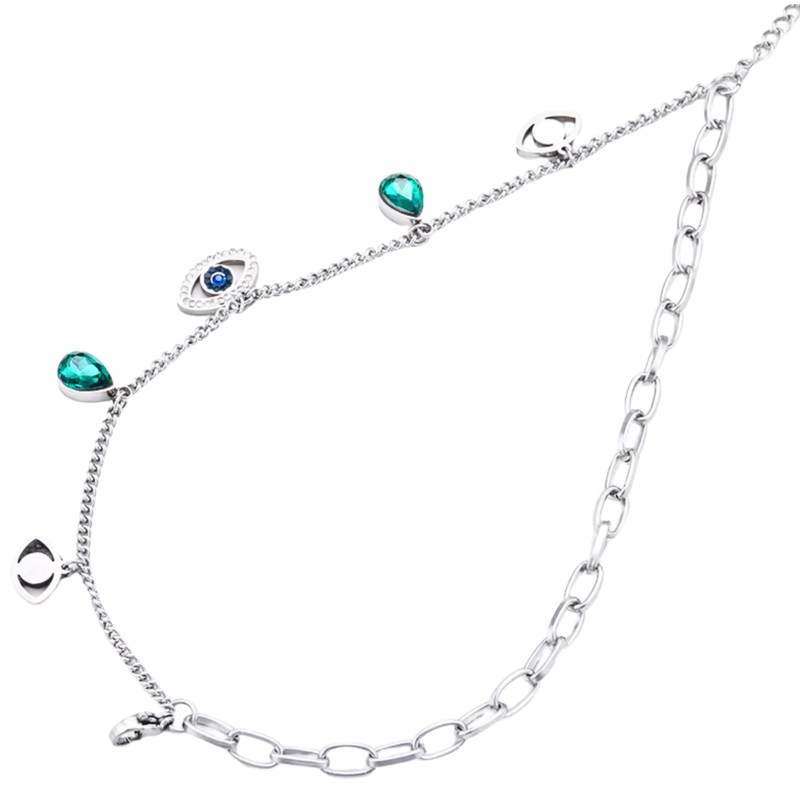 - PREMIUM DESIGN: Double-layered chunky chain bracelet featuring evil eye charm with crystal cubic zirconia detailing and crystal cubic zirconia teardrop accents