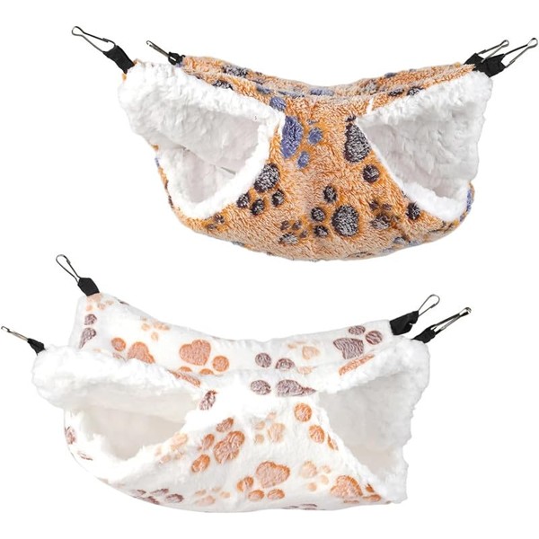 Double-Layer Pet Cage Hammock for Small Animals, 2 Pack Double-Layer Pet Cage Hammock, 2-Layer Soft and Fluffy Guinea Pig Hanging Bed,Soft Fluffy Hanging Bed for Guinea Pigs, Rats, Hamsters