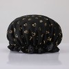 Double Layer Shower Cap for Women, Elastic Band Reusable Shower Cap for Hair, Waterproof Plastic Shower Cap with Ruffles Covering Ears, Suitable for Long, Short and Curly Hair (Black Heart)
