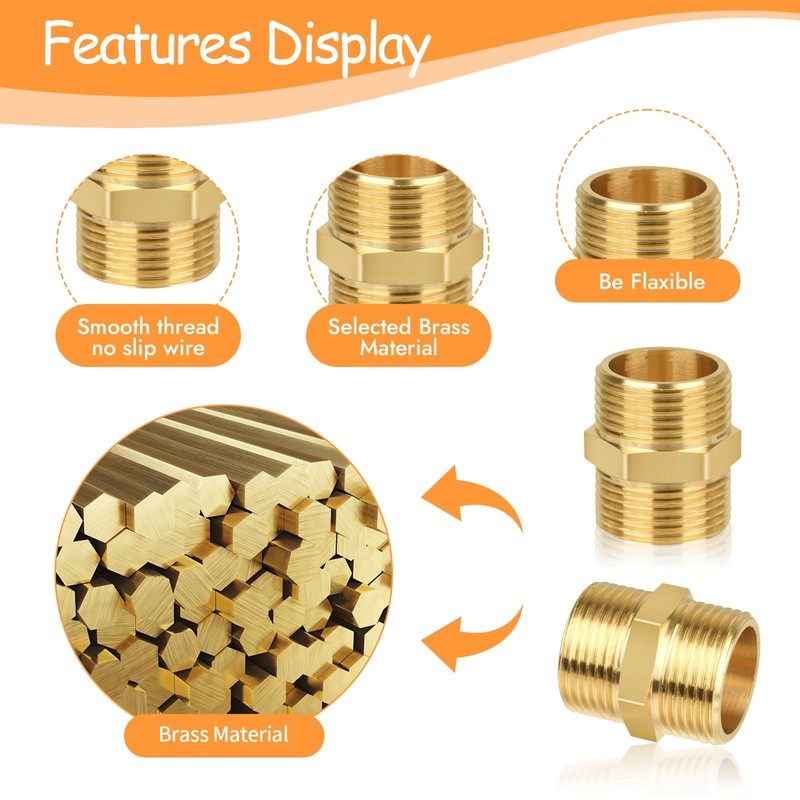 - Easy to install: our brass male thread double nipples are easy to install and remove, the double nipples can be installed in any position in horizontal, vertical and diagonal pipes, it is an ideal replacement accessory. For fittings without seals on the threaded ends, sealants such as hemp or Teflon sealing tape should be used