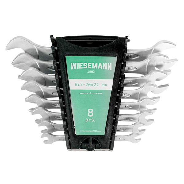 Double Open-End Wrench Set 8 pcs by WIESEMANN 1893 I Open-End Spanner Kit with Holder I 81277