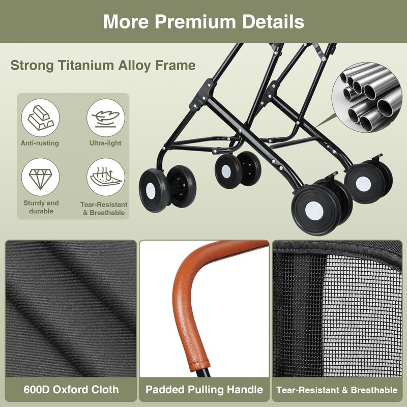 - Durable, Weather-Resistant Construction:Made from premium 600D Oxford cloth and a sturdy powder-coated metal frame, this stroller is built to last. The weather-resistant fabric ensures protection from the elements, while the foldable design allows for easy storage and portability when not in use.