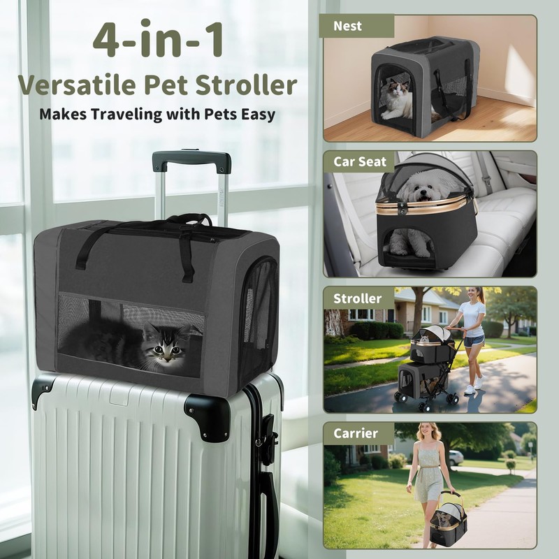- 3-in-1 Versatility:This double pet stroller is a game-changer, transforming effortlessly into a stroller, pet carrier, or car seat, making it perfect for pet owners on the go. Whether you're strolling in the park, traveling by car, or navigating through crowded streets, it ensures your pets' safety, comfort, and convenience all in one.