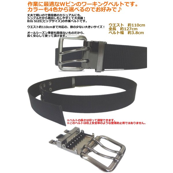 Double Pin Working Belt for Work (wp-40) Width 3.8cm/Waist 110cm (Black), black (black 19-3911tcx), ワンサイズ