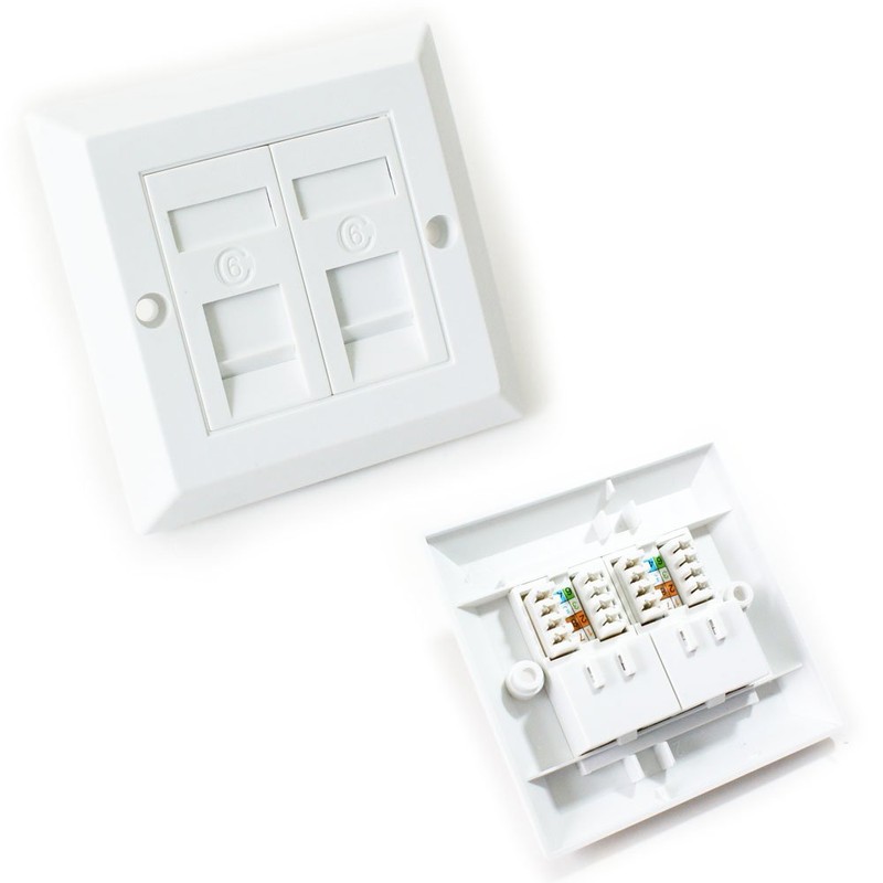 Double Port CAT6 IDC Wall Outlet Face Plate - 2 Way RJ45 Network Ethernet Socket - Loops