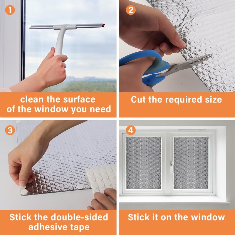 - [Wide Range of Applications]:The reflective insulation roll can be applied to various scenarios, including summer window insulation, sun blocking, winter indoor insulation, windows, attics, garage doors, walls, RV insulation, and fireplace surroundings.