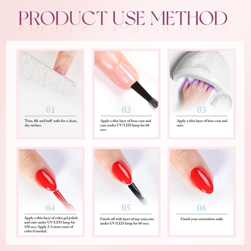 - HEALTHY FORMULA: 9 toxin free ingredient makes it a healthy nail gel with low odor, safe for your nails. No harsh ingredients or adhesives that lead to damaged nails. Keep them away from the pregnant and kids.