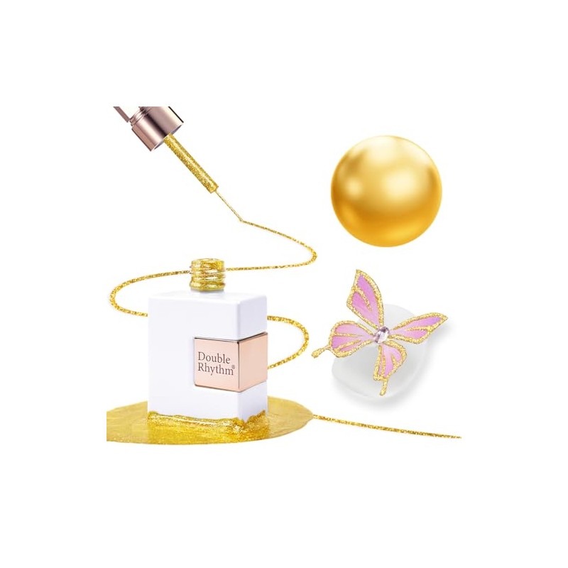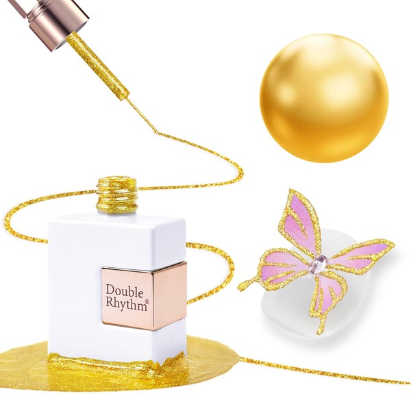 Double Rhythm 15 Ml Metallic Gel Liner Nail Art Gel Bronze Mirror Chrome Painted Drawing Stripper 3D Effect Gel Polish (Glitter Yellow Gold-L1008)
