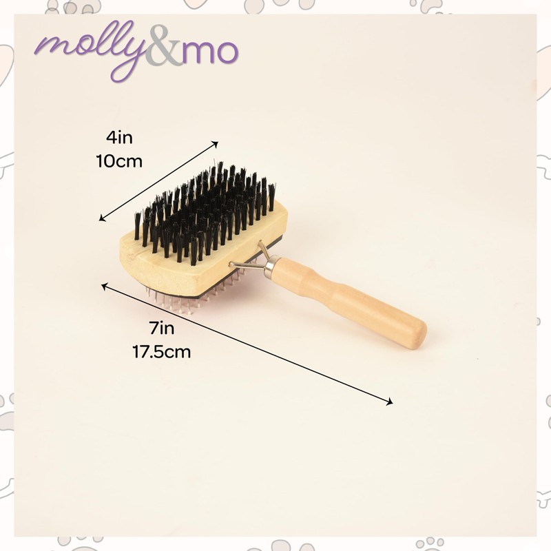 Transform your pet grooming routine with this versatile double-sided 7 inch dog brush featuring a wooden handle. This all-in-one grooming tool combines two essential brushes in one convenient design - a pin side for tackling tangles and a bristle side for smoothing and finishing. The strategically spaced bristles effectively remove loose fur and tame hair, while the sturdy pins work through knots and matting with ease. Perfect for everyday brushing, this professional-grade tool helps maintain a clean, healthy coat while reducing shedding around your home. The comfortable wooden handle provides excellent control and grip during grooming sessions. Whether you have a short-haired or long-haired dog, this dual-purpose brush adapts to different coat types and grooming needs, making it an essential tool for keeping your furry friend looking their best.