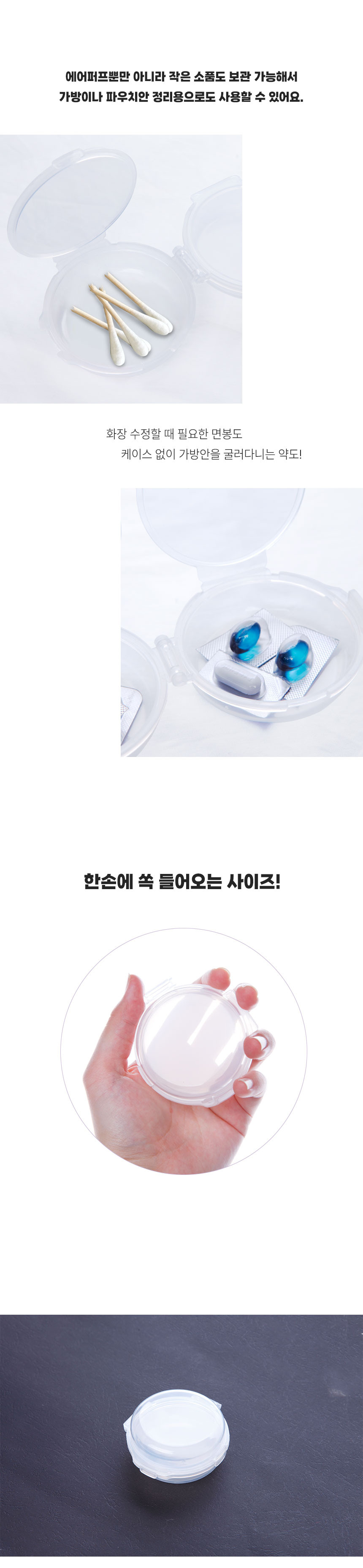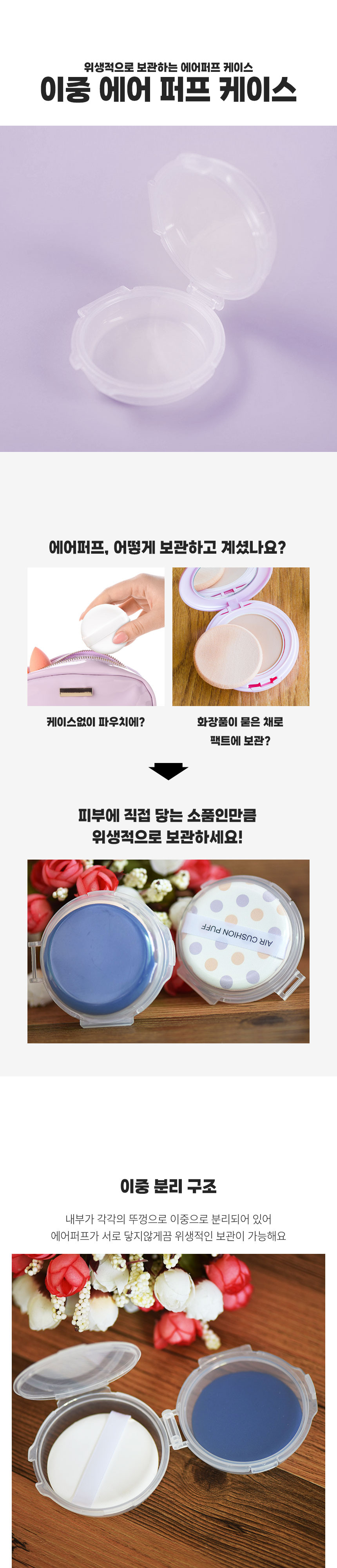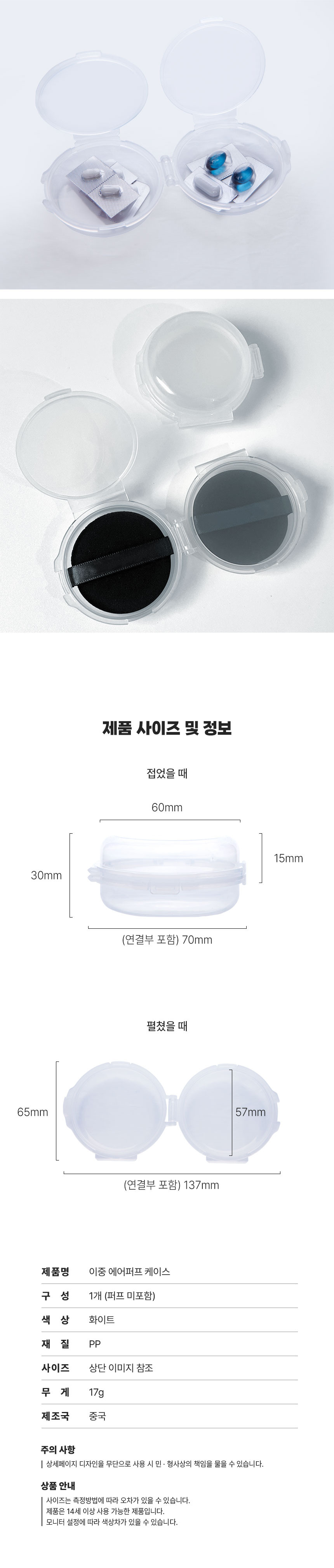 양면 이중 에어 퍼프 쿠션 원형 정리 케이스 보관 통 - 이중에어퍼프케이스
