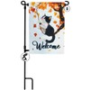 Double Sided Fall Garden Flag 12X18 Inch with Stand, Burlap Cute Cat Maple Leaves Welcome Autumn Garden Flag, Thanksgiving Yard Flags for Outside Seasonal Set Decoration