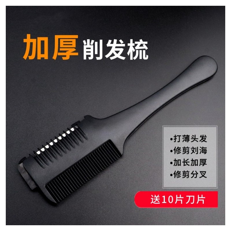 Double-Sided Hair Cutting & Thinning Comb with Blade Free Size/Black (1 comb includes 10 blades) 4ea