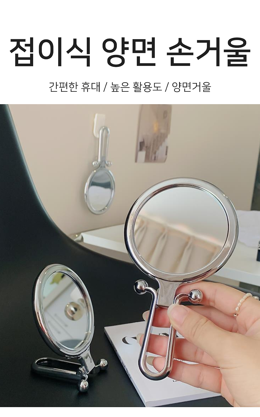 양면 확대 손거울 휴대용 원형 미니 접이식 - 양면손거울(5배)