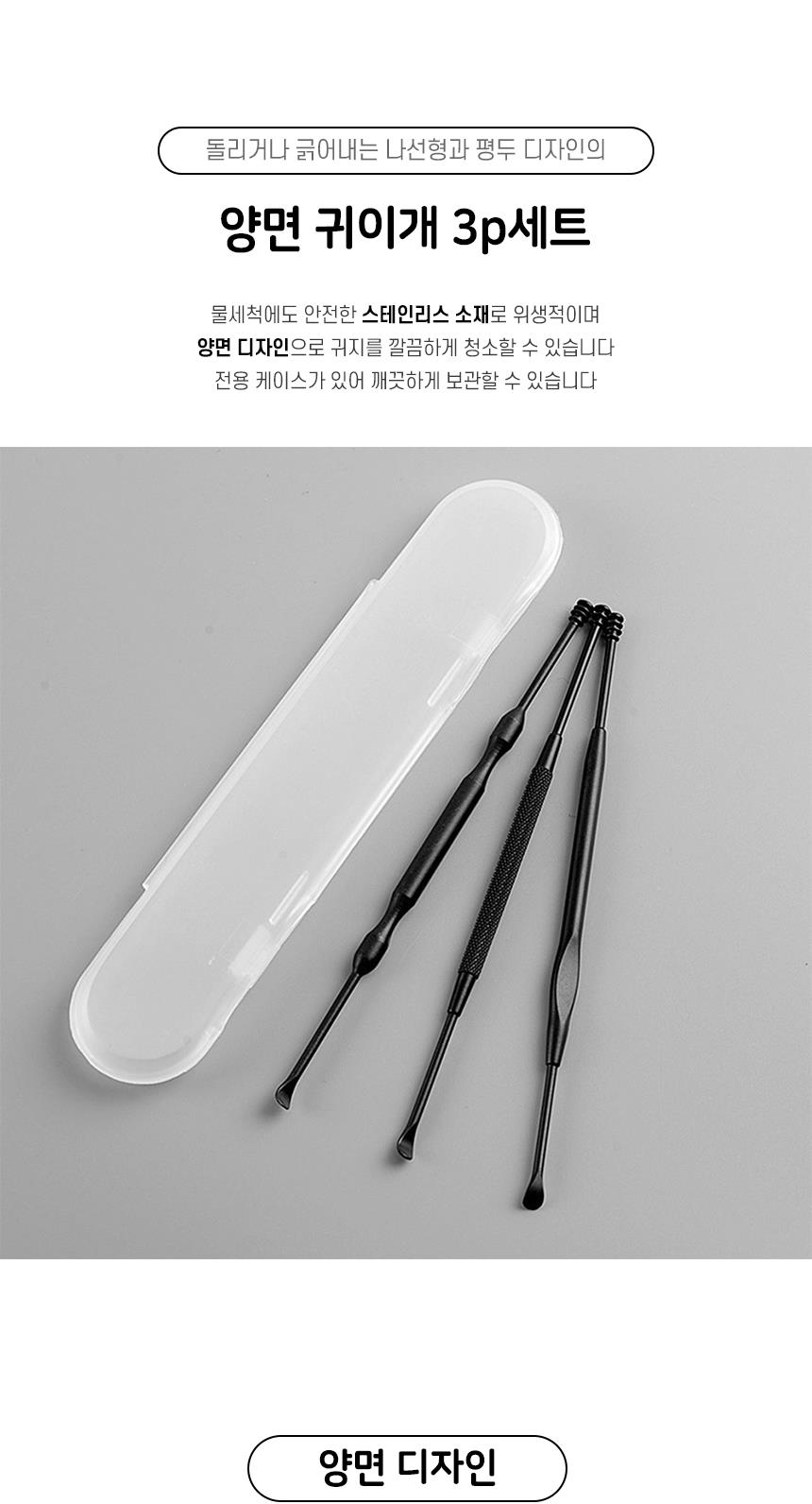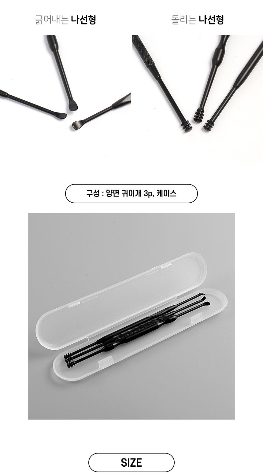Double-sided multi-use earpick case 3-piece set (black) x3