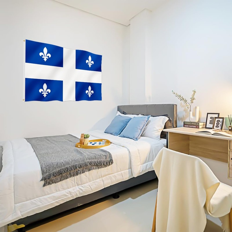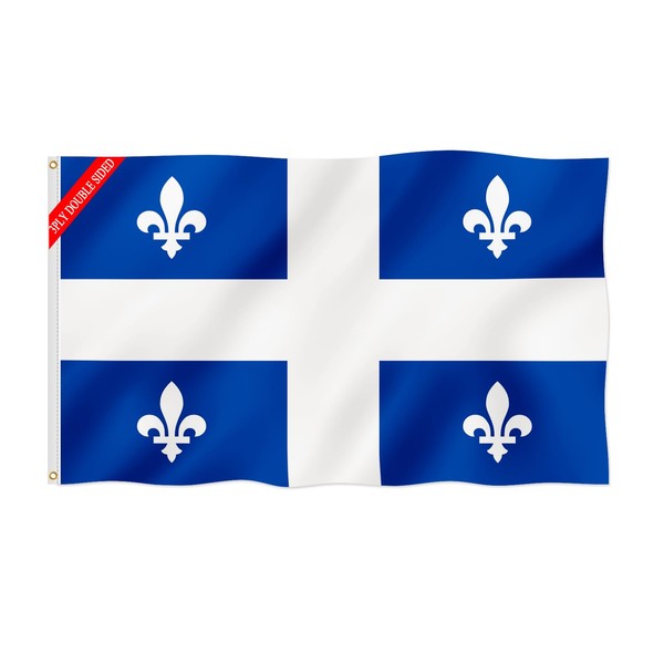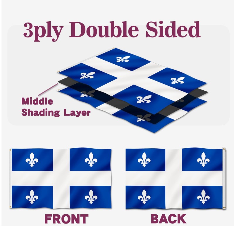 Double Sided Quebec Flag Canadian Province QC Flag 4x6FT 120x180cm Fade Proof Gorgeous Color Thicker Polyester with 2 Brass Grommets