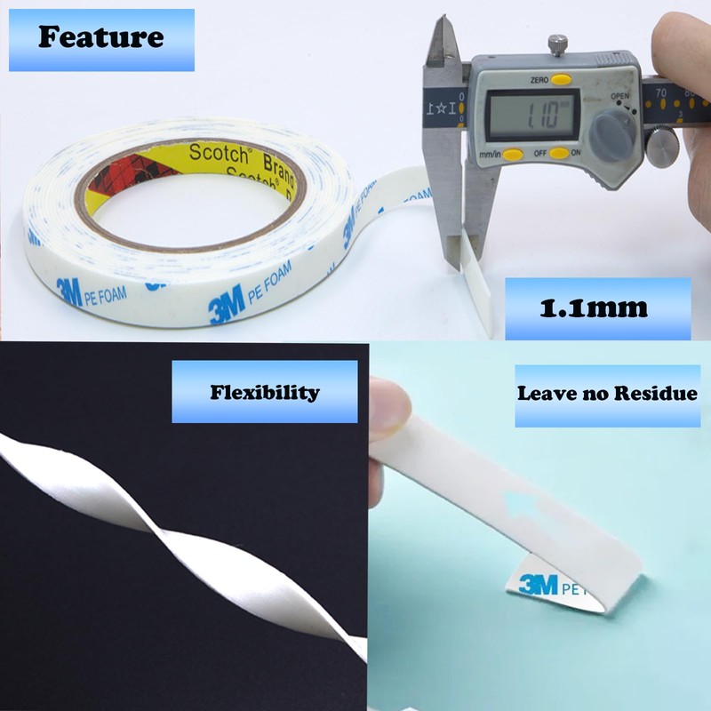 - Strong double sided tape heavy duty:This tape belongs to 1600T series,which is made of PE material,width 0.39 inch(10mm), length 16.5ft(5m), Thickness 0.043inch(1.1mm).
