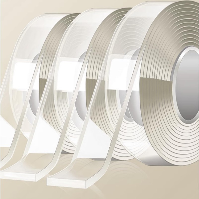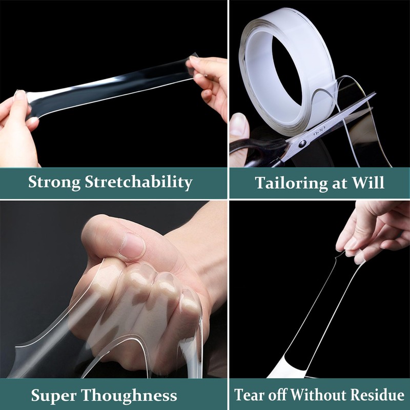 DOUBLE SIDED STICKY TAPE used it in your living room, bedbroom,kitchen,office,meeting room, even car etc which You can use it to fix or paste items such as car phone holder, poster, picture frame, pen holder, wall sticker, hook, small tools, sticky pads, phone cases, patches, decorative patches, wall decor. It is suitable for solid surfaces such as tiles, marble, glass, metal, wood, plastics, etc.