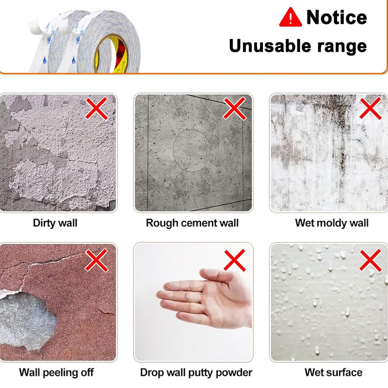- Load-bearing capacity: Our 3m double-sided strong adhesive has strong adhesion and provides strong adhesion even on hard-to-stick surfaces. As the adhesive flows into the surface, the bond strength increases