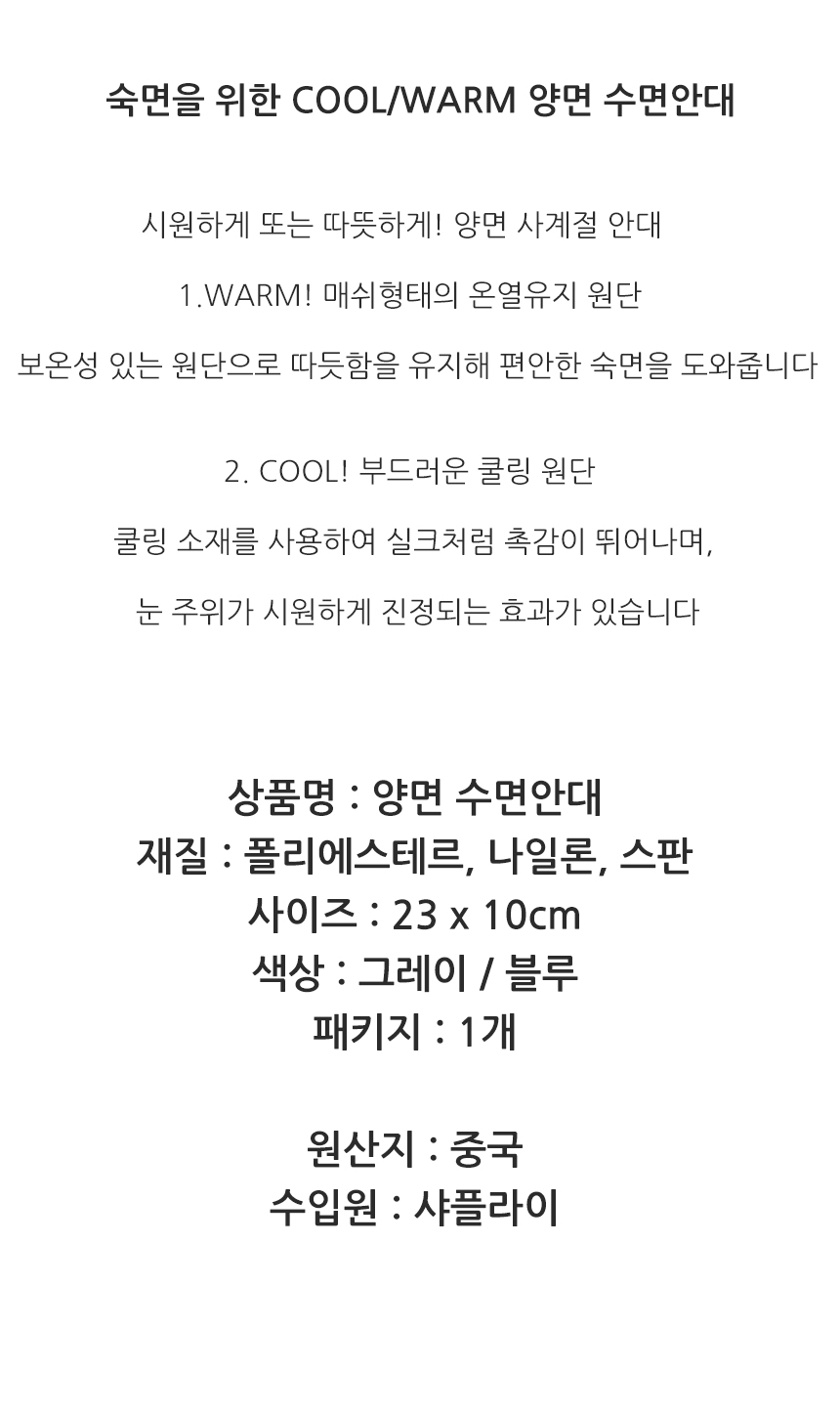 양면 보온 여행용 소품 편안한 보조용품 휴대용 수면안대 쿨링 Double-sided thermal travel accessory comfortable support portable sleep mask cooling